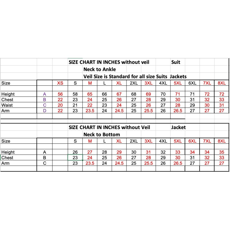 | 5XL | 180cm | 148cm | 138cm / 54" | 67cm |