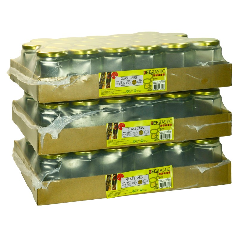 Classic, sturdy, and food-safe – these 340g hexagonal glass jars are perfect for presenting and storing your honey in style.